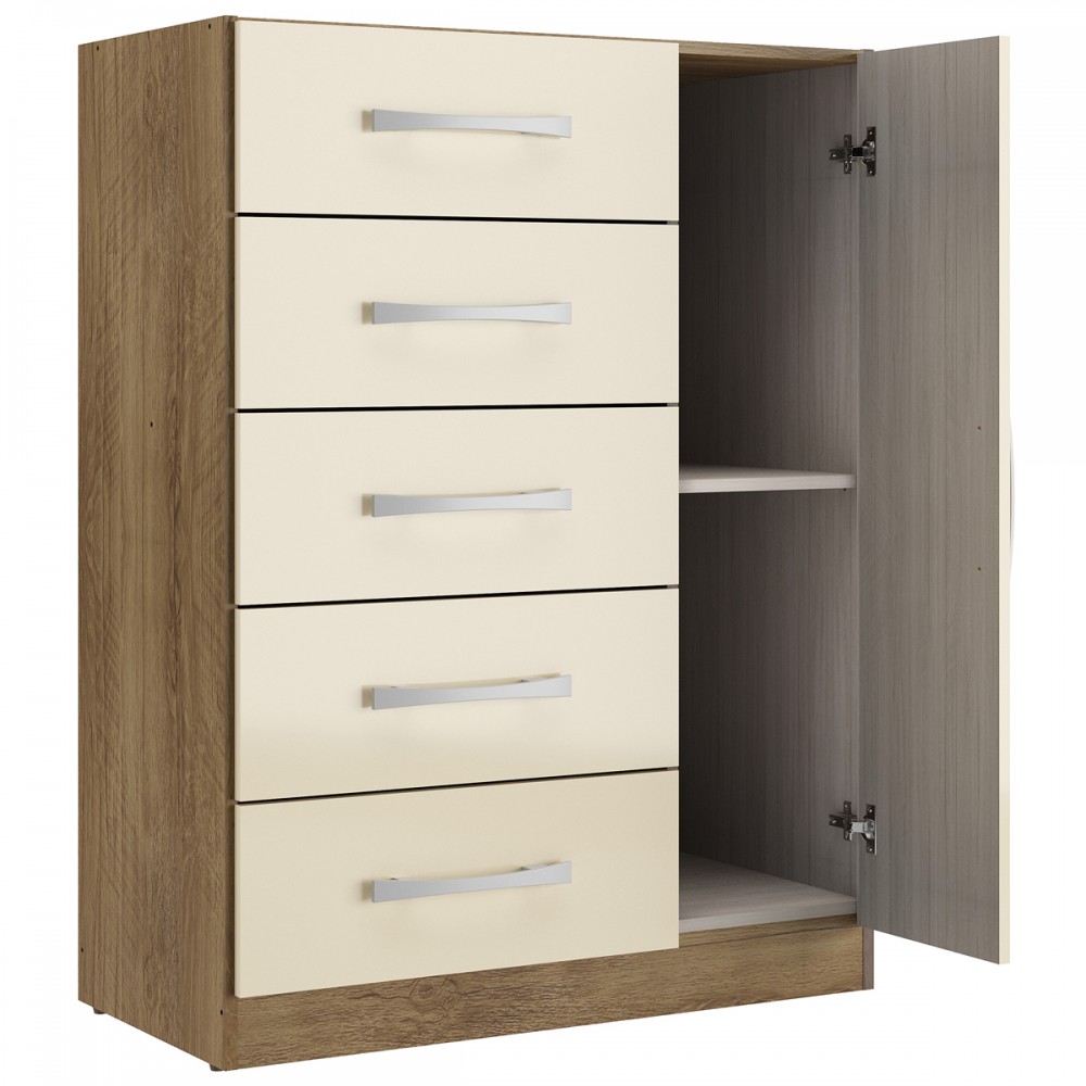 Cômoda 5 Gavetas 1 Porta Corais Bege - Pnr Móveis