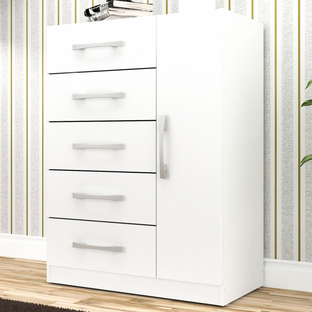 Cômoda 5 Gavetas 1 Porta Corais Branco - Pnr Móveis