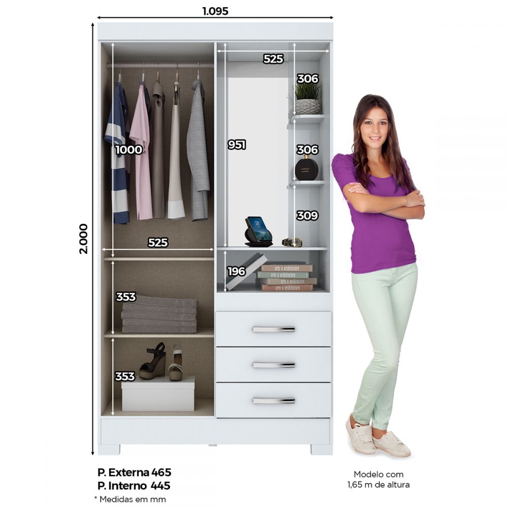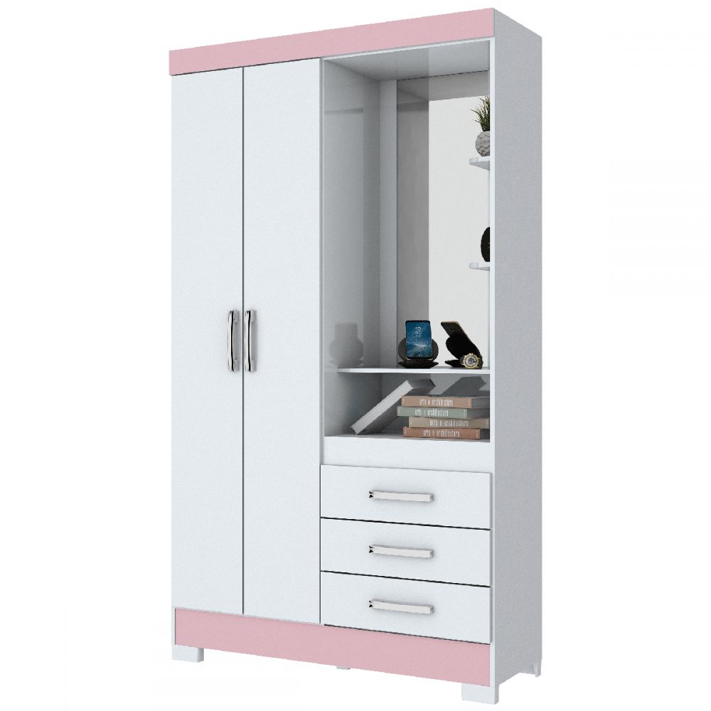 Guarda-Roupa Solteiro 2 Portas 3 Gavetas Branco/Rosa Chá B64 - Briz